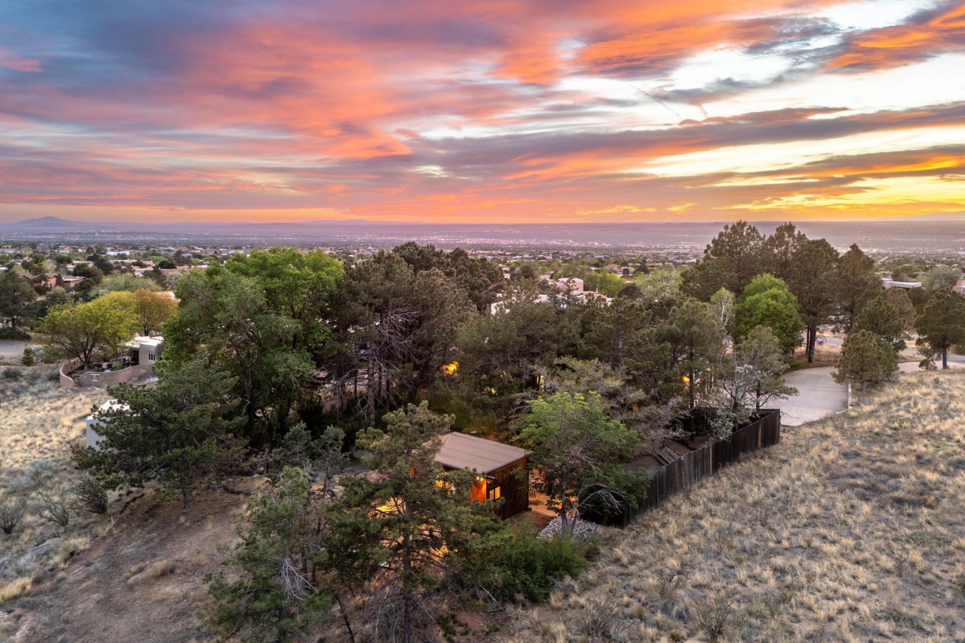 Nestled in the foothills of the Sandia Mtns, this beautifully updated contemporary home offers a rare blend of space, views & access to nature. Enjoy close proximity to walking trails & outdoor recreation right from your neighborhood. Inside, remodeled kitchen & baths bring a fresh, modern feel, while three generously sized living areas provide flexible space for living, entertaining & drinking in the views & tranquil setting. Situated on .83AC, the property features multiple outdoor living spaces, both open & fenced, along with a peaceful water feature that enhances the setting. A heated workshop off the garage & a separate backyard studio (w/electricity) add versatility for hobbies or a creative space. A unique opportunity to enjoy comfort, functionality & the Sandia Heights lifestyle.
