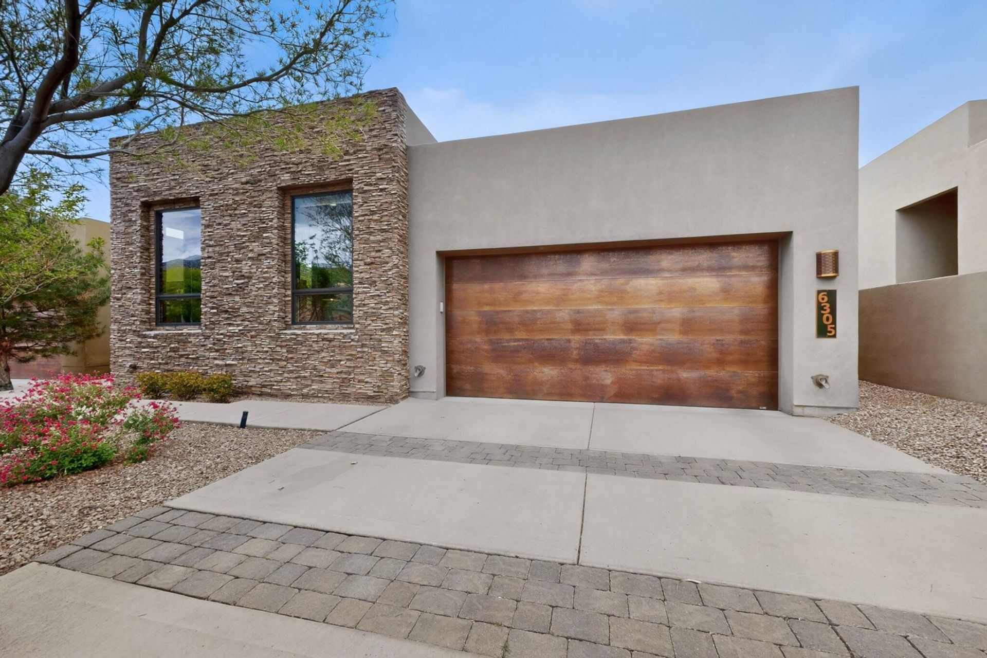 Welcome to The Legends, an exclusive gated enclave in the prestigious High Desert, perfectly positioned at the base of the Sandia Mountains. This is where modern luxury meets the outdoor lifestyle--just steps from miles of scenic hiking and biking trails, yet minutes from the best dining, shopping, and conveniences Albuquerque has to offer.Built by Las Ventanas Homes and awarded NM Green Build Silver certification, this residence delivers a refined, modern aesthetic with designer-level finishes throughout. From the moment you enter, you're greeted by clean architectural lines, abundant natural light, and a seamless open-concept design that feels both sophisticated and inviting. Premium features include tile and wood flooring, quartz countertops, custom cabinetry, solid wood doors with
