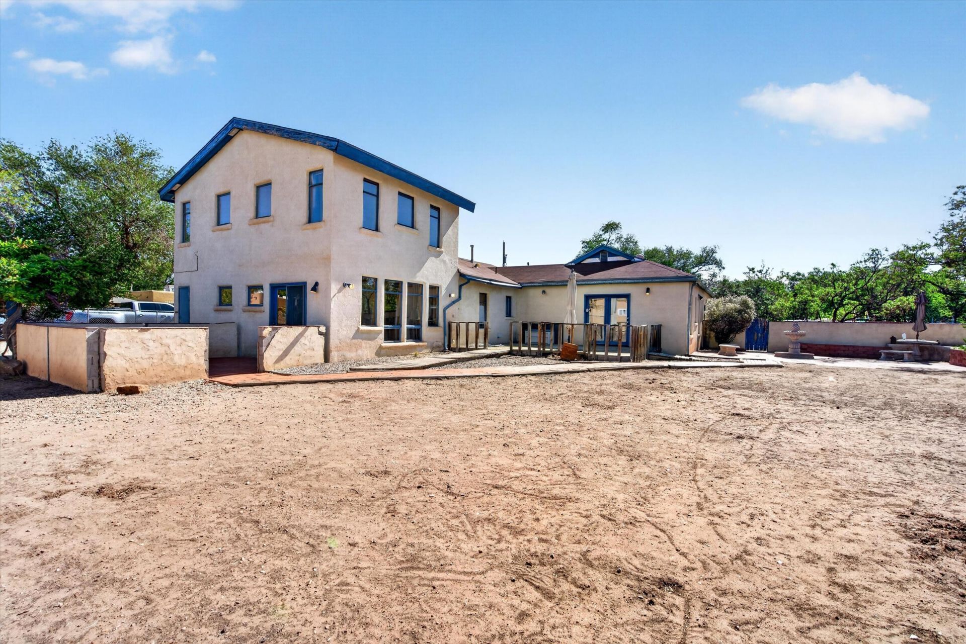 Discover true South Valley charm in this meticulously maintained 3-bedroom, 2-bathroom home situated on a sprawling .603-acre lot. This isn't your cookie-cutter property; it's a home filled with architectural soul and modern comforts. The main floor features a stunning combination of authentic brick and original hardwood flooring, flowing into an updated kitchen equipped with custom oak cabinetry and Corian countertops. The oversized primary suite is a showstopper, boasting soaring tongue-and-groove beamed ceilings, classic brick floors, and wood casement windows that flood the space with light. For ultimate relaxation, the master suite offers direct access to a private patio. Upstairs, you'll find two additional spacious bedrooms perfect for family, guests, or a home office .