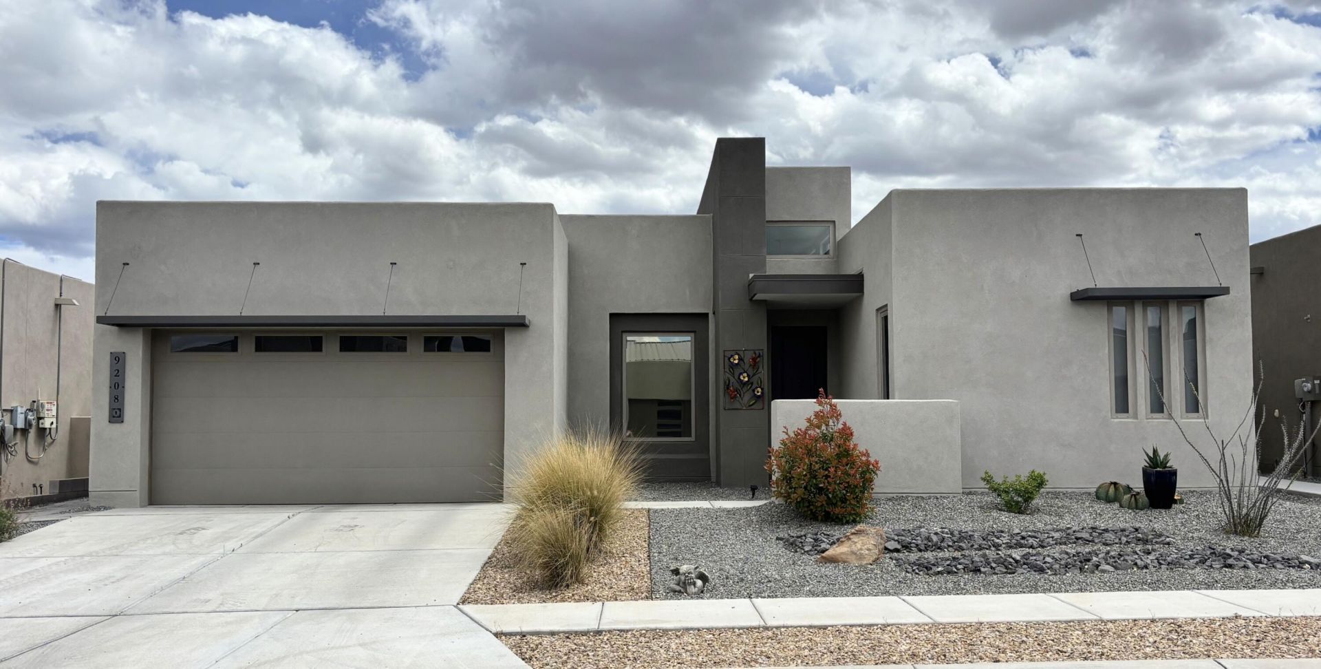 Stunning ''like new'' 2,598 SF contemporary masterpiece by Abrazo in sought-after Ascension neighborhood on a offers the pinnacle of Albuquerque luxury living. This home sits on a premium upgraded lot in the neighborhood. Designed with a sleek, modern aesthetic and high-end finishes throughout, this 3-bed, 3-bath home seamlessly blends sophisticated style with everyday comfort. Chef-inspired kitchen serves as the heart of the home, with top-tier appliances and exquisite modern details. The spacious owner's suite provides a private retreat, while the additional bedrooms offer versatility for guests + extra gym/home office/flex space. The crown jewel of the property is the expansive rooftop deck, providing unobstructed, panoramic views of the Sandia Mountains.